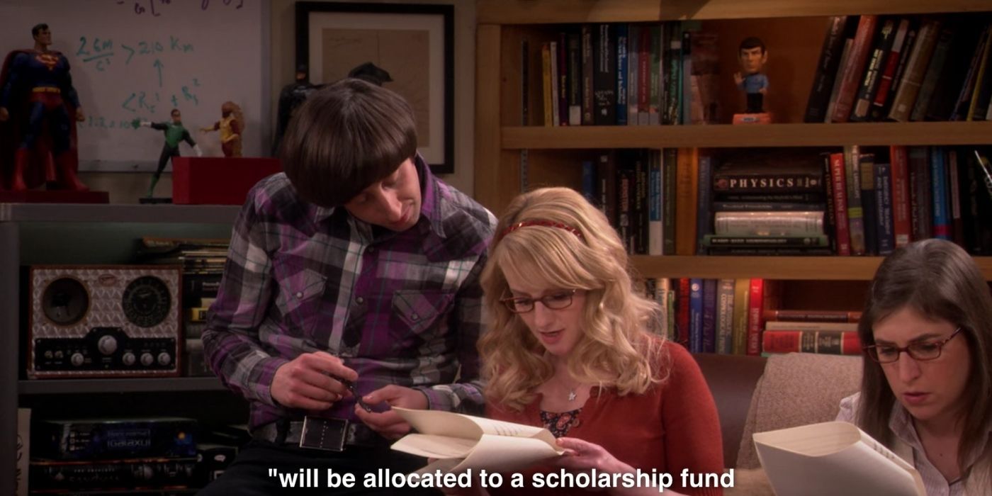 At the bottom of the contract was a new clause. Sheldon was to set aside a percentage of his earnings to a college fund for the first child or Bernadette and Howard Wolowitz. This meant that he would make a contribution to Halley's education, which was one of the nicest things Sheldon had ever done.