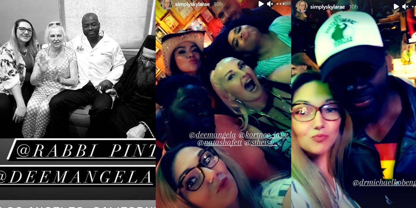 It was back in March that Angela Deem was first seen celebrating Dr. Obeng’s birthday in L.A., all dolled up in a pretty red dress. Rumor is, the bash, which Angela attended with daughter Skyla, will be a plot later on 90 Day Fiancé: Happily Ever After? Earlier this week, Angela was seen back in Dr. Obeng’s clinic, sitting with Skyla and the surgeon, looking alarmingly skinny. “Michael won't be happy. Look how close together they are sitting,” a fan commented while some wondered what a rabbi was doing with them. The next day, pictures of Angela at a party in The Cowboy Palace Saloon in Chatsworth surfaced, and she also shared some on her feed.