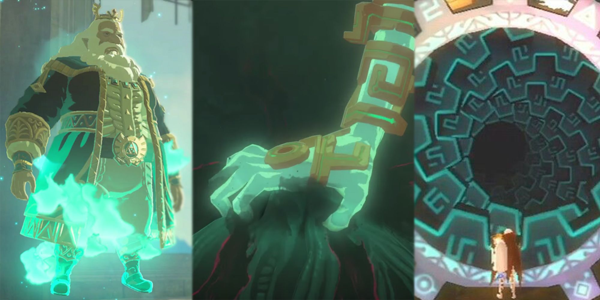 Green energy is associated with spirits throughout The Legend of Zelda franchise, such as the Hylian spirits, Midna in Twilight Princess, and King Rhoam in BOTW. This, combined with the conscious act of grabbing Link's arm in the trailer, suggests that this arm belongs to the active spirit of someone powerful, like the Hero of the Sky. This would be possible due to the first Link's deep connection with both the Triforce and the Master Sword, both of which were used to seal Demise and Ganon, which could have imbued these powerful relics with his spirit. It's also worth noting that the mummified Ganondorf is leaking the malice directly where the spectral hand is holding, alluding to the constant struggle between Link and Demise that's persisted up to this point.