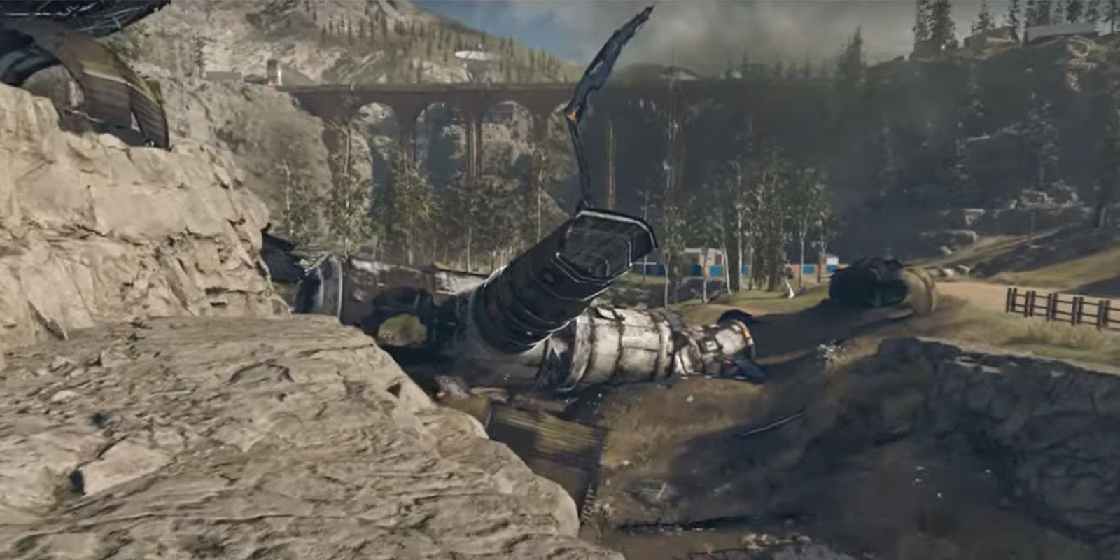 - Gora Bridge – Head to the south-central part of the map and Gora Bridge, which is between Promenade East and Downtown. The satellite has literally crashed into the bridge. Part of the debris sits on the bridge itself, while the rest fell to the aqueduct below.