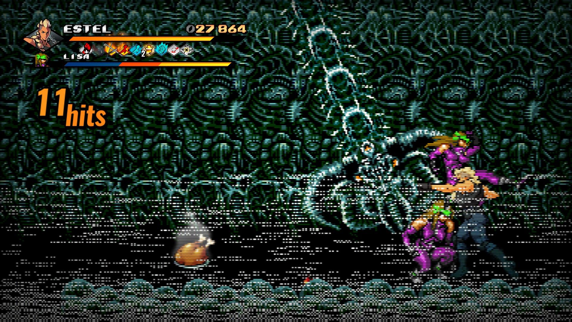 It’s the kind of game mode which builds on the proven strengths of Streets of Rage 4’s combat but also adds some satisfying chaos. New weapons have been added to Mr. X Nightmare, including the trumpeted swordfish, what seems to be a durian fruit, and quite a few others, all of which will populate each randomized Survival mode area. Individual levels in this mode include motifs from the original game with brand new artwork, low-resolution arenas based on scenes from earlier titles, as well as a wide selection of bosses which seemingly span the full series. Later levels introduce multiple bosses at once, including ghost duplicates of the heroes that are especially crafty, as these fights weren’t to be found in any previous Streets of Rage game. It's a mode which will put veterans through their paces but also lead to some interesting character builds.
