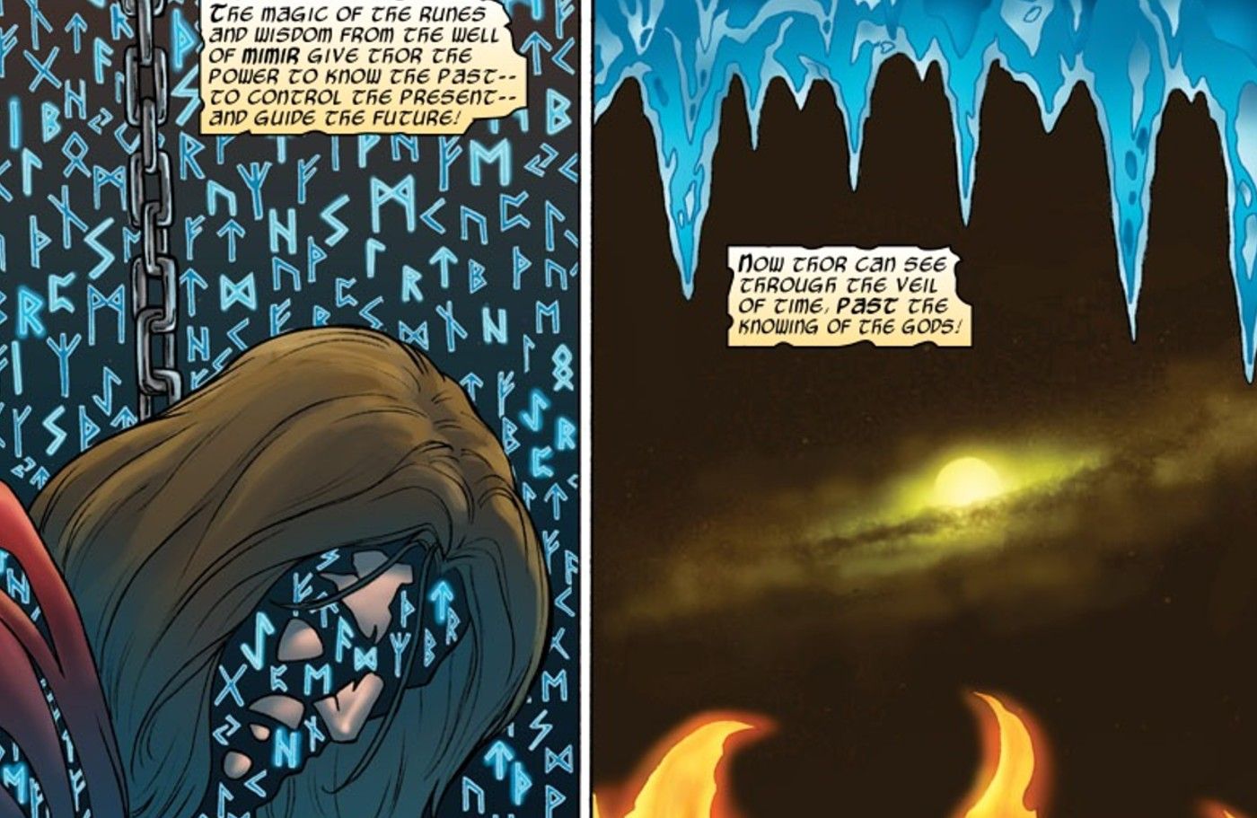 In Thor #83 (1998), King Thor heads to Hildstalf after making Beta Ray Bill the new king in his absence. In a quest for more knowledge about Ragnarok, Thor runs into a ghost who reveals he can give him Odin's powers and become an even greater god. The young boy's spirit further tells him he can become more than All-Father, leading Thor to pluck both of his eyes out and drop them in the Well of Mimir. After drinking water from the well, Thor sees the past and learns of Ragnarok. However, he's informed to complete his quest and gain the Odinpower, he will need to die and be reborn.