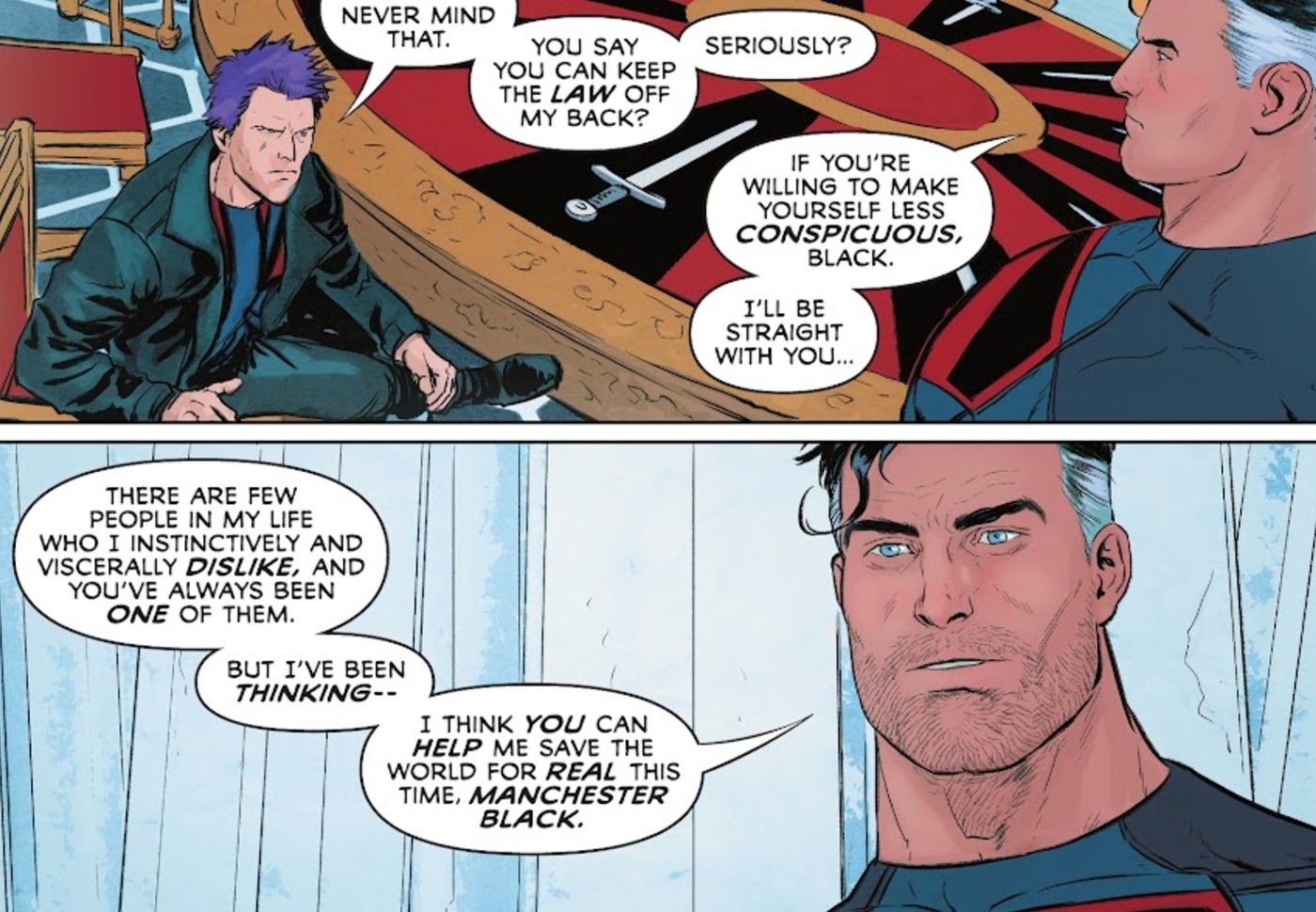 As such, the alliance between Superman and Manchester Black is a surprising one, given Black's reputation as a terrorist in the DC Universe. Black himself even acknowledges this in the issue, telling Superman that, "I've tried to kill you and your loved ones not once but numerous times! I led my own super-team and I'm a wanted metahuman terrorist," underscoring the strangeness of the entire situation.