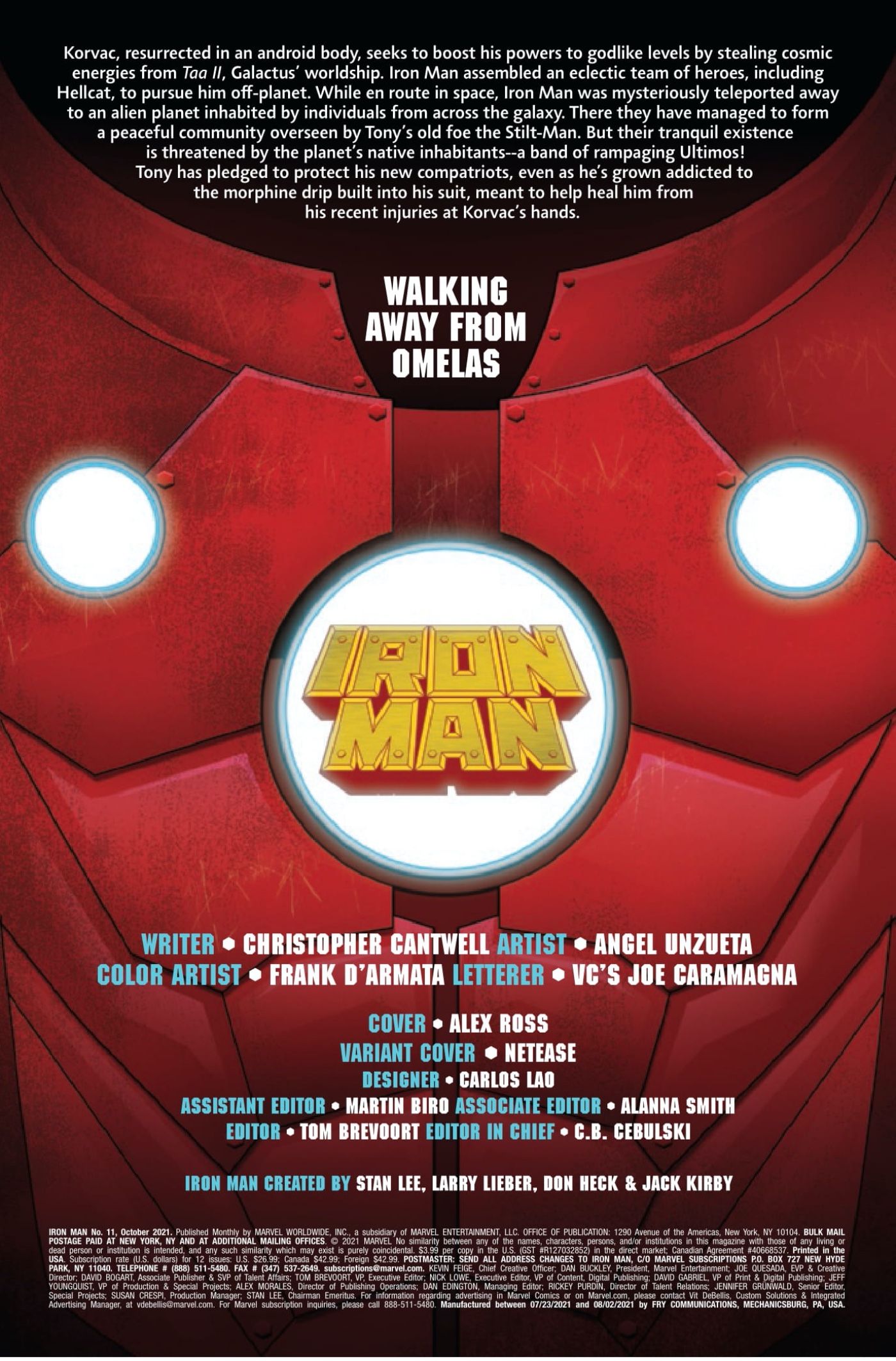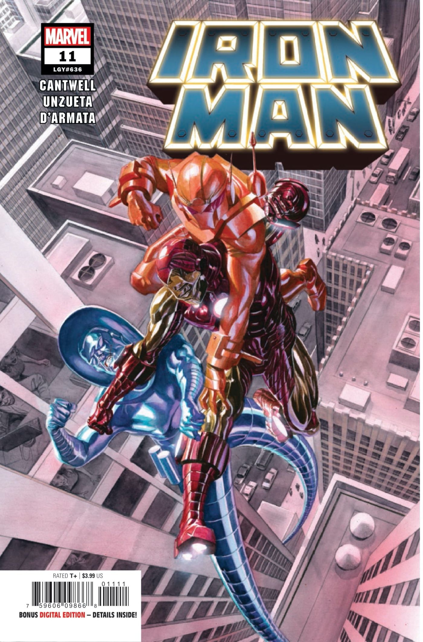 Korvac has returned, more powerful than ever, and he has a new mission: to ascend to godhood and make the universe a better place by exterminating all free will. Korvac has built an army of acolytes made up of supervillains, intending to attain supreme power by raiding Galactus' ship, the Taa II. To stop Korvac, Iron Man assembled a team of Z-list heroes, including Gargoyle, Frog-Man, Scarlet Spider, Misty Knight, and the mutant Halcyon, but Iron Man was mysteriously teleported to a mysterious world inhabited by individuals from across the universe and overseen by the former villain Stilt-Man. On this planet, Iron Man has found meaning and a purpose, but his team are still out in space, trailing Korvac, and in Iron Man #11, they reveal they intend to continue the mission without him. The issue is written by Christopher Cantwell, with art by Angel Unzueta, colors by Frank D’Armata and letters by Joe Caramagna.