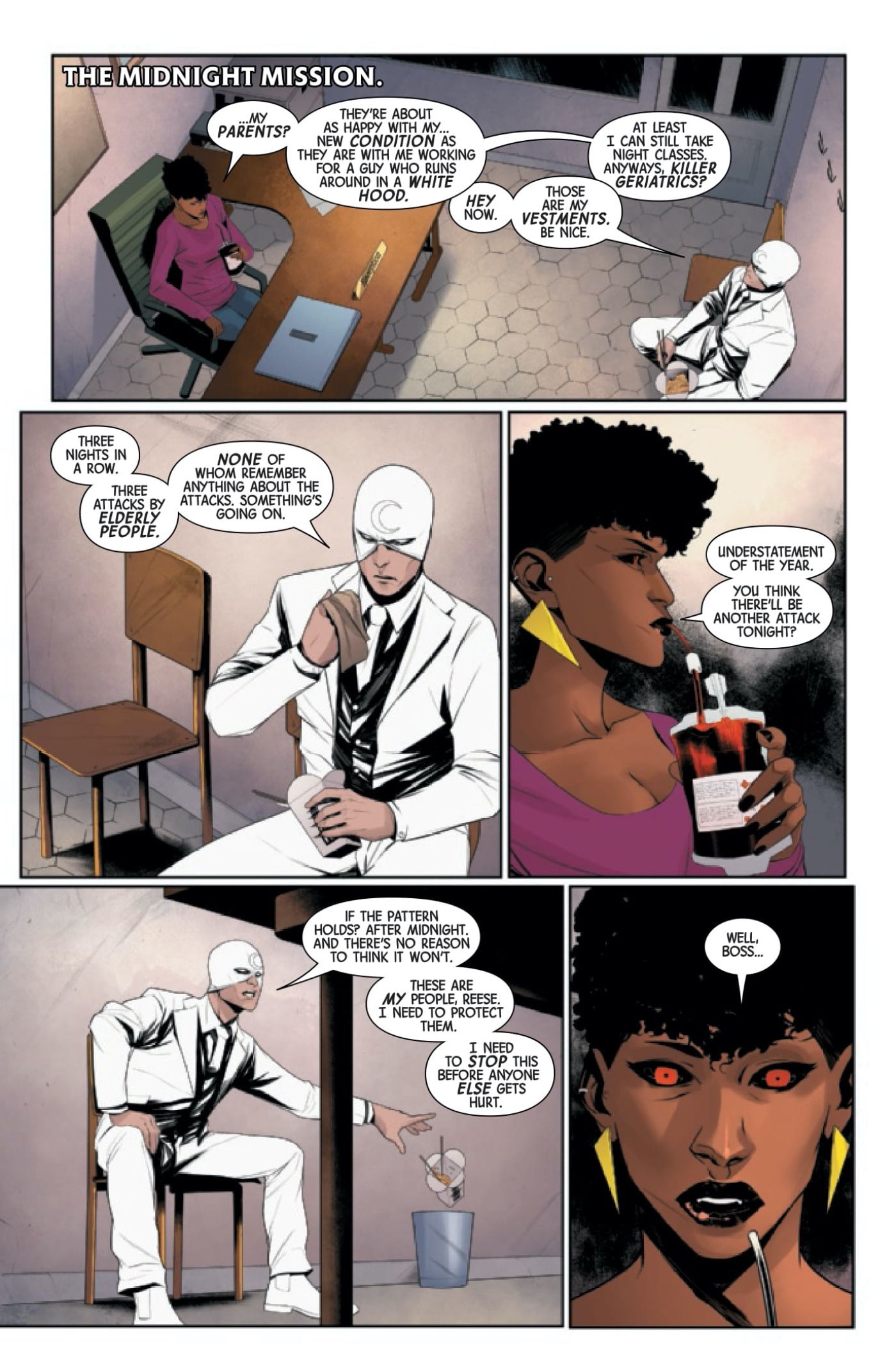 A new threat has arisen to menace Moon Knight in a preview of his new comic: killer senior citizens! In Moon Knight #2, on sale in print and digital August 18, a mysterious force has taken control of the elderly in the Midnight Mission, turning them into a violent hivemind, and now it's on Moon Knight to save the elderly antagonists without hurting them.