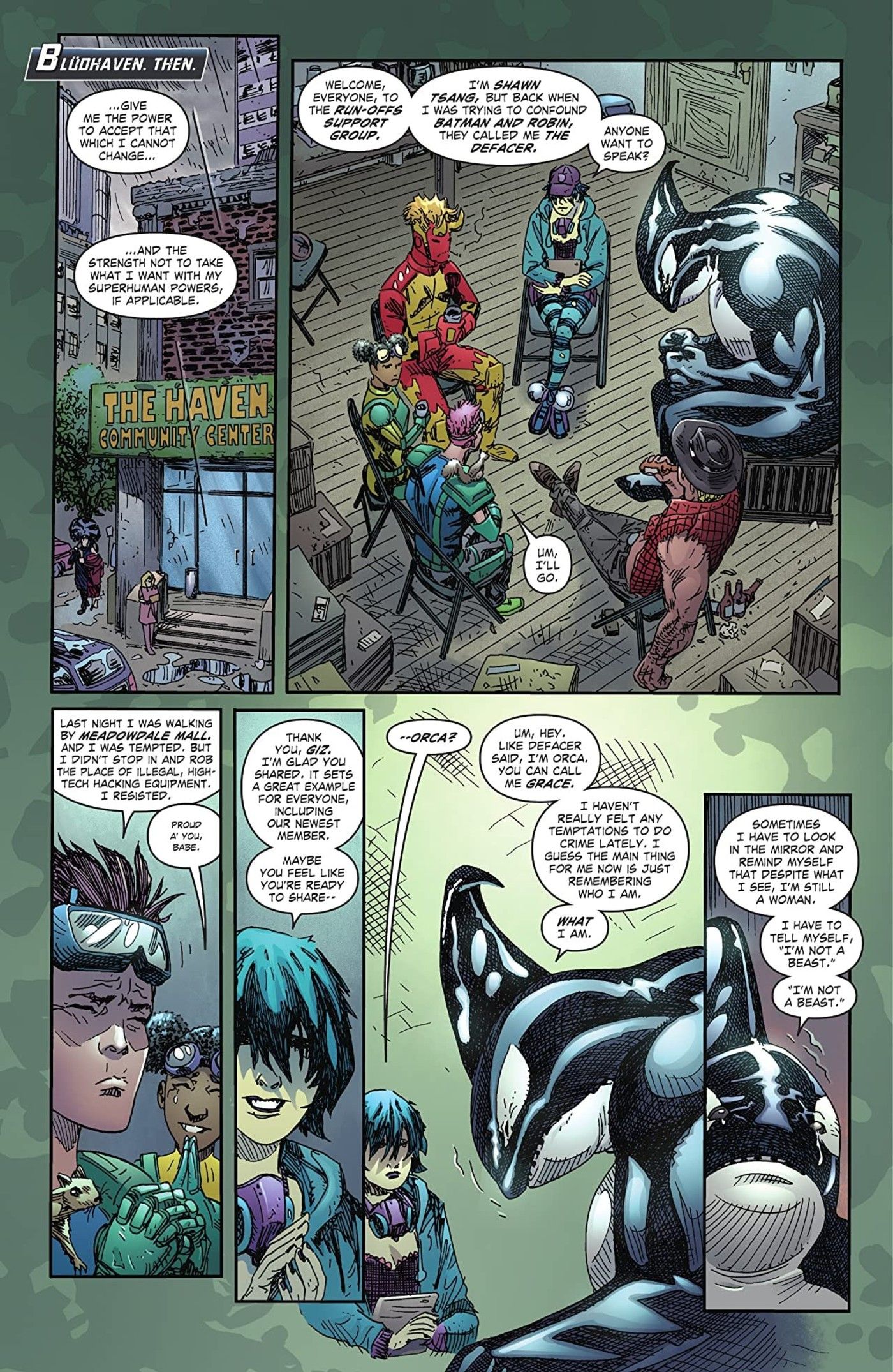 On Twitter, DC Comics released a preview of Suicide Squad: King Shark #2, from the creative team of Tim Seeley, Scott Kolins, John Kalisz, and Wes Abbott. The new preview focuses predominantly on Orca, a supervillain whose alter ego is Grace Balin. It shows a regression that she undergoes, leading up to her fight with King Shark - though the outcome is yet to be revealed: