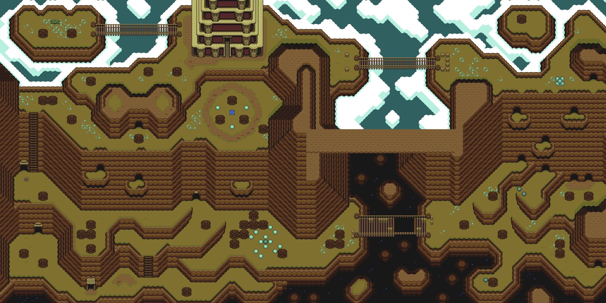In A Link to the Past and its spiritual successor, A Link Between Worlds, Death Mountain returns to the northern edge of Hyrule along with its signature peak, Spectacle Rock. Death Mountain is host to three of A Link to the Past's many dungeons, including the Tower of Hera in the Light World, with Turtle Rock and Ganon's Tower in the Dark World. Although ALTTP puts the final showdown against Ganon atop Death Mountain like in the original game, the mountain has much less prominence in A Link Between Worlds.