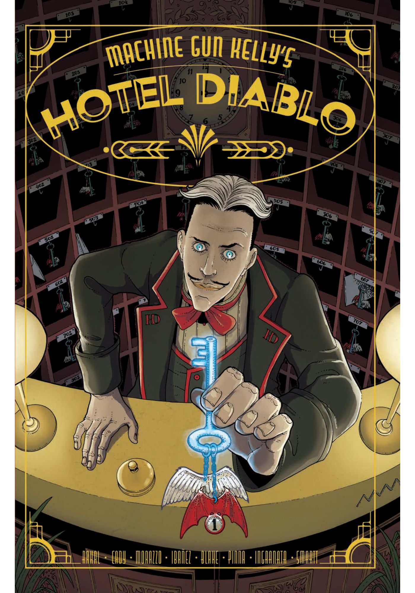 Machine Gun Kelly's new original graphic novel, Hotel Diablo, is coming soon and we've got an exclusive preview of the pop-punk superstar's latest project. Z2 Comics has teamed up with Machine Gun Kelly for the new horror title, which shares the same name as the musician's 2019 album, Hotel Diablo. The anthology will focus on Lidia Lopez's first night as front desk host and the guests in the hotel between Heaven and Hell they encounter.