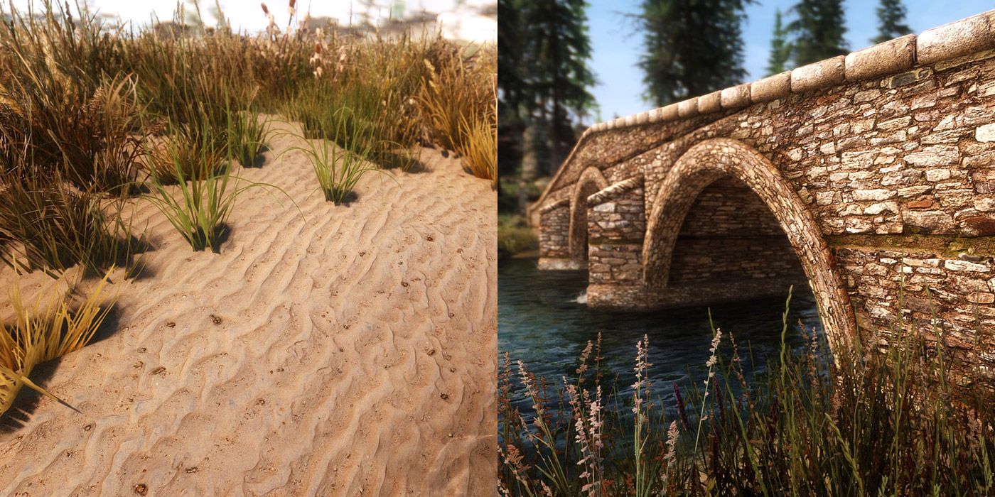This mod affects landscape textures primarily, covering the various environmental floors with amazing high-fidelity and brilliance. Quality hounds can rejoice, for the mod comes in several flavors going all the way up to an astonishing 8K. Most gamers might want to stick with either 2K or 4K textures, however.