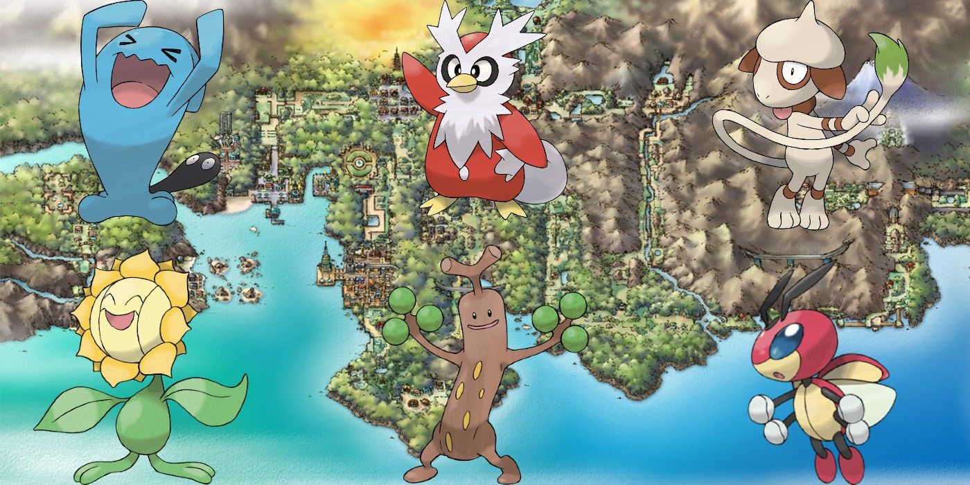 Johto is the neighboring region to Kanto and features some familiar designs and Pokémon. Unfortunately, like Kanto, Johto has its fair share of useless Pokémon that should be left roaming the wilds instead of the battlefield. Pokémon's Wobbuffet's stats are all low except for its HP, which subverts the use of its Destiny Bond move. Delibird is a Pokémon that can actively heal opponents, which is a risk Trainers should never take. Smeargle can be helpful with its Sketch ability, but its stats are liable to get it knocked out before it can kick in. Sunflora and Sudowoodo are single-type Pokémon that fail to develop movesets to counter their weaknesses and suffer from low BSTs, and while Ledian is dual-type, it doesn't fare much better.